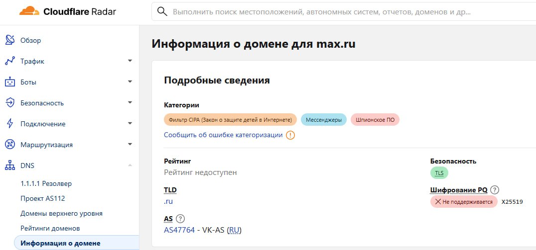 10:51, 30 АПРЕЛЯ 2026 SOTA Cloudflare объявил мессенджер Max шпионским и вредоносным программным обеспечением При этом Cloduflare не раскрывает причину этих пометок.