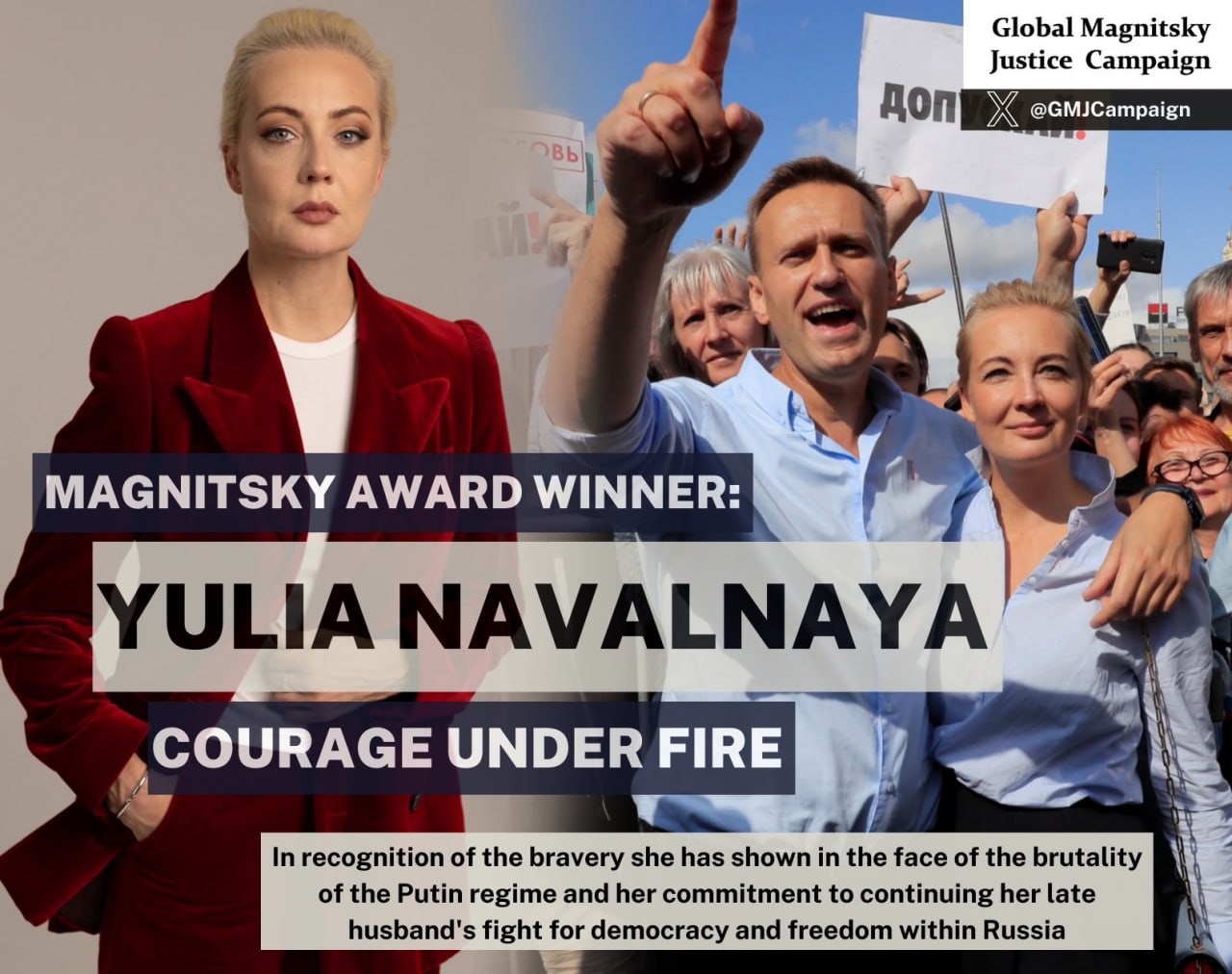 Случай вручения премии мужу и жене не уникален: так, лауреатами в разные годы становились Владимир Кара-Мурза (как оппозиционный активист) и его супруга Евгения (за то же. что у Навальной, «мужество под огнем»). Из соратников Навального премию также получала Любовь Соболь.